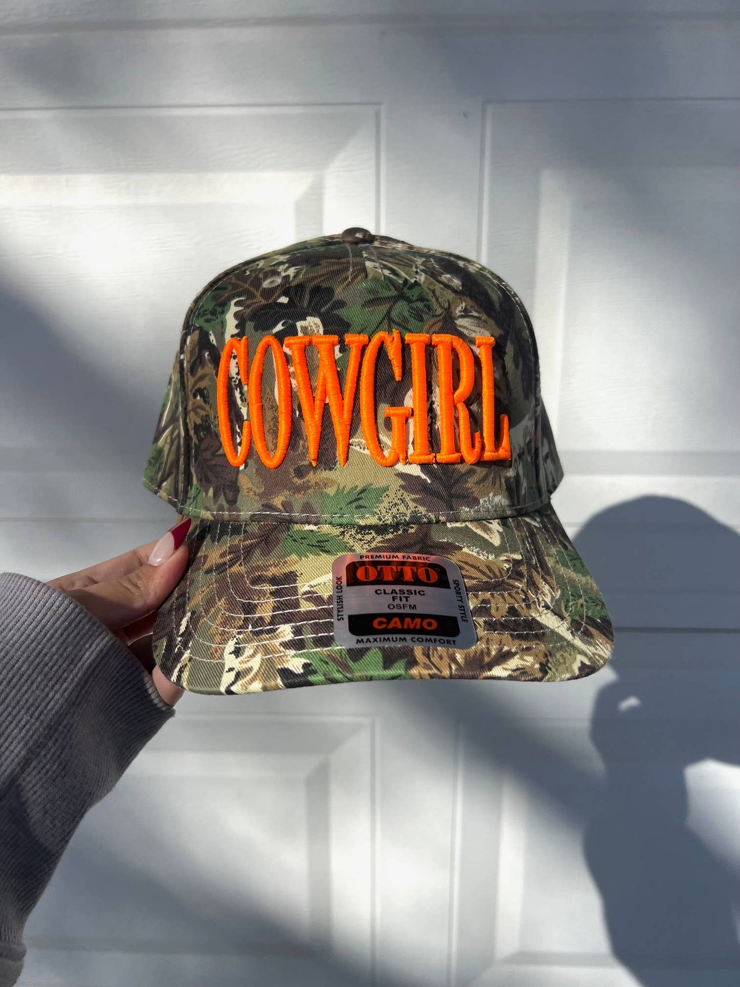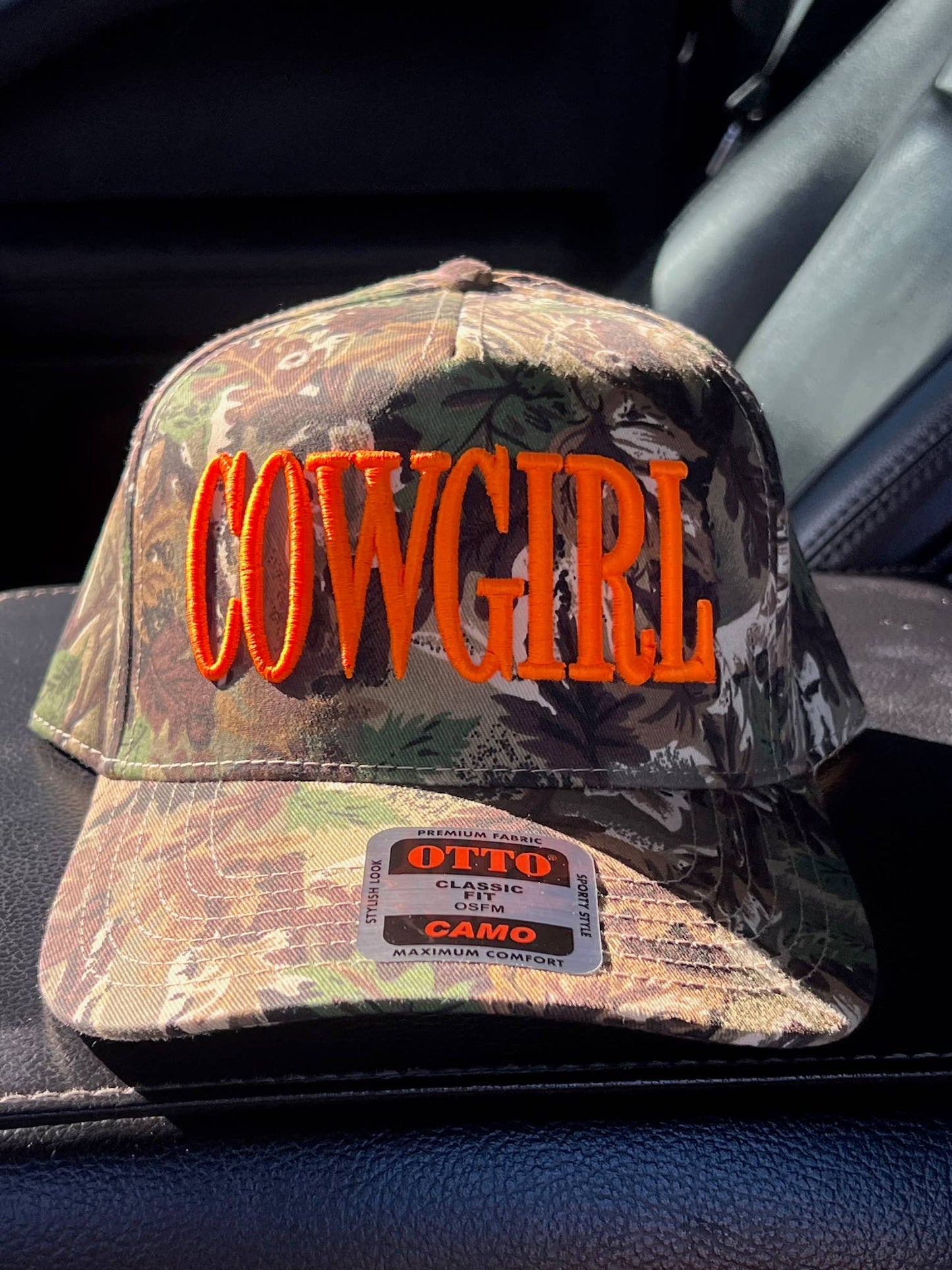Add Camo Neon Cowgirl Embroidered Trucker Hat  to the cart