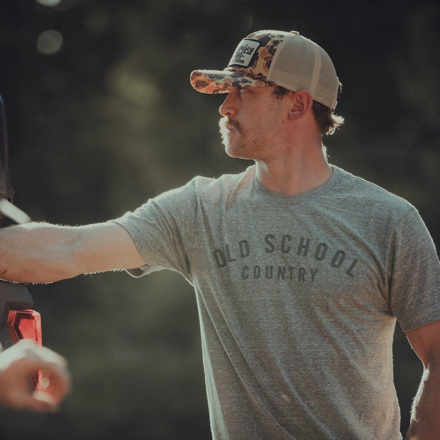 Need we say more? Who doesn't love Old School Country? This classic ultra-soft grey T is meant to be worn with pride, and it's also meant to get dirty and sweaty. * Knit, Dyed Cut and Sewn in the USA * Tri-blend construction 50% polyester, 25% cotton, 25% rayon * 40 singles thread weight * Comfortable and durable * Contemporary fit Modern athletic fit - order a size up for a looser fit.